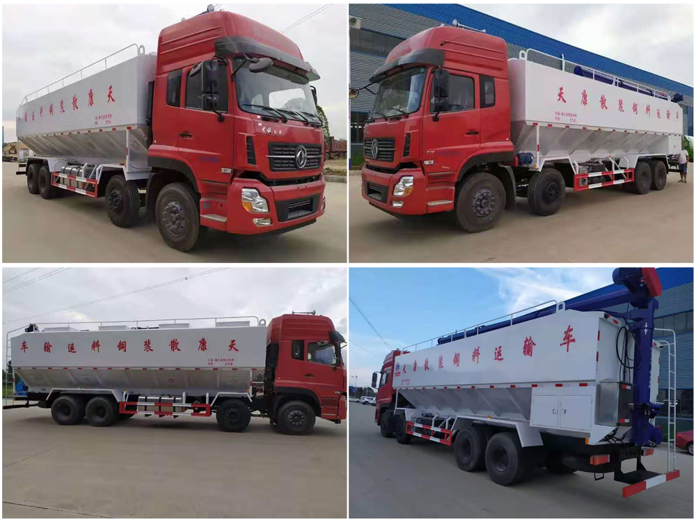 散裝飼料車(chē),又名散裝飼料運(yùn)輸車(chē),飼料運(yùn)輸車(chē)。結(jié)構(gòu)簡(jiǎn)單、性能可靠、輸送量大、操控方便、機(jī)動(dòng)性強(qiáng)、對(duì)物料無(wú)污染等特點(diǎn),廣泛應(yīng)用于各大中小型養(yǎng)殖企業(yè)的飼料的運(yùn)輸。主要用于從飼料廠向畜牧場(chǎng)、養(yǎng)禽場(chǎng)及飼料加工用戶(hù)運(yùn)輸散裝飼料成品或飼料生產(chǎn)原糧,同時(shí)它也可用來(lái)運(yùn)輸某些無(wú)腐蝕性粉粒狀原料,如制藥廠粉料和糧庫(kù)周轉(zhuǎn)。