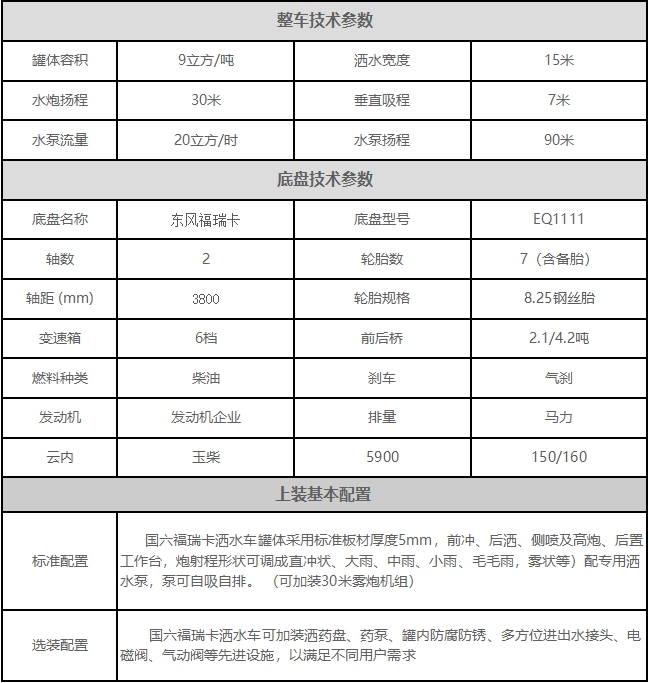 國(guó)六東風(fēng)大福瑞卡9.2方灑水車(chē)