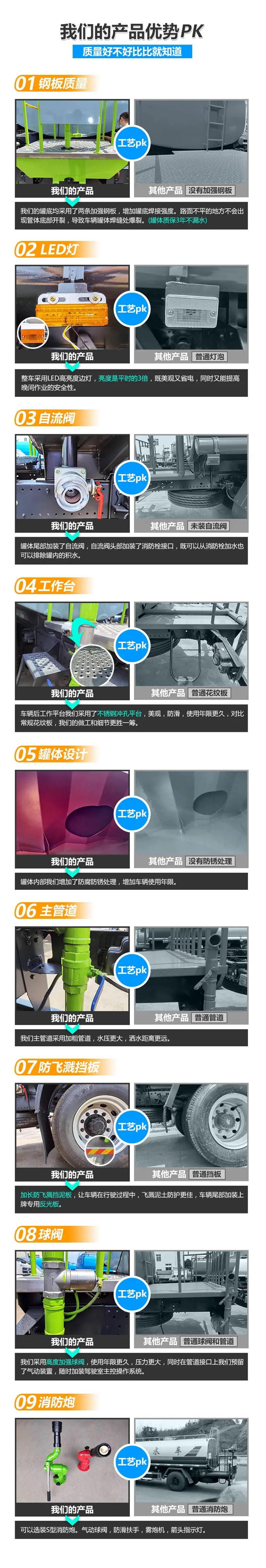| 其他 | 選裝前面罩以及前霧燈,運(yùn)輸介質(zhì):水;密度:1000千克/立方米;當(dāng)安裝噴霧機(jī)組時(shí),罐體外形尺寸(長(zhǎng)×長(zhǎng)軸×短軸(mm)/ 整備質(zhì)量(Kg)/額定載質(zhì)量(Kg)/整車長(zhǎng)(mm)/高(mm)對(duì)應(yīng)關(guān)系為:3200×1600×1100/3610/3620/6554/2640。罐體有效容積為:3.8立方米。 當(dāng)選裝后部灑水平臺(tái)時(shí),罐體外形尺寸(長(zhǎng)×長(zhǎng)軸×短軸(mm)/整備質(zhì)量(Kg)/額定載質(zhì)量(Kg)/整車長(zhǎng)(mm)/高(mm)對(duì)應(yīng)關(guān)系為: 3400×1590×1100/3430/3800/5990/2390. | ||